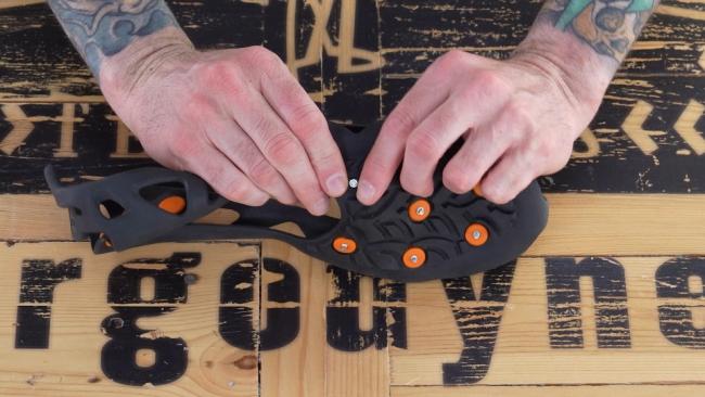 - FULL FOOT ICE TRACTION – 10 rugged, heat-treated carbon steel studs line the foot with a thicker under-sole tread connecting the mid-foot and heel stud zones for extra traction