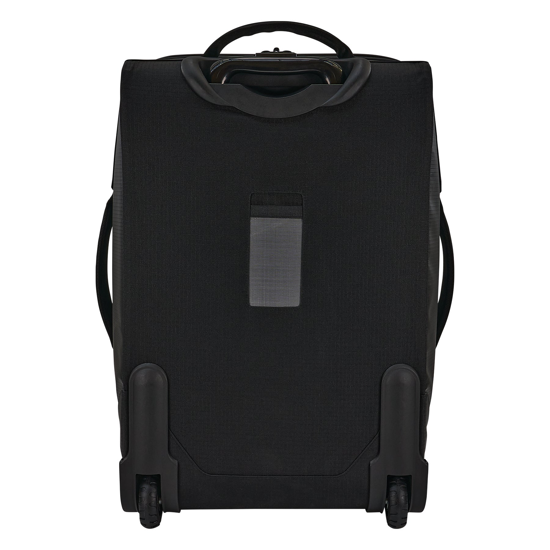Designed for hassle-free transport, this bag includes a two-wheel system and a telescoping handle, ensuring smooth maneuverability. It's carry-on friendly and complies with most TSA carry-on regulations.