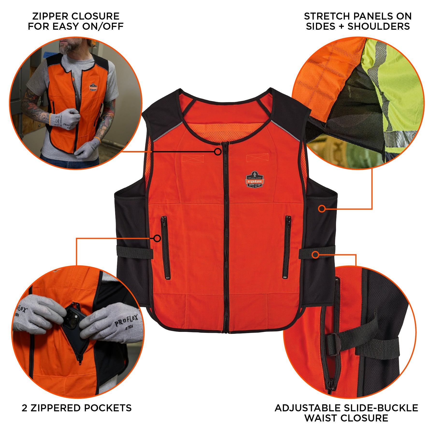 The Chill-Its 6260 Lightweight Phase Change Cooling Vest is 30–60% lighter than traditional cooling vests and is designed to keep workers cooler, safer and more productive. Its phase change cooling packs maintain a 64° F / 18° C temperature for up to two hours when activated.