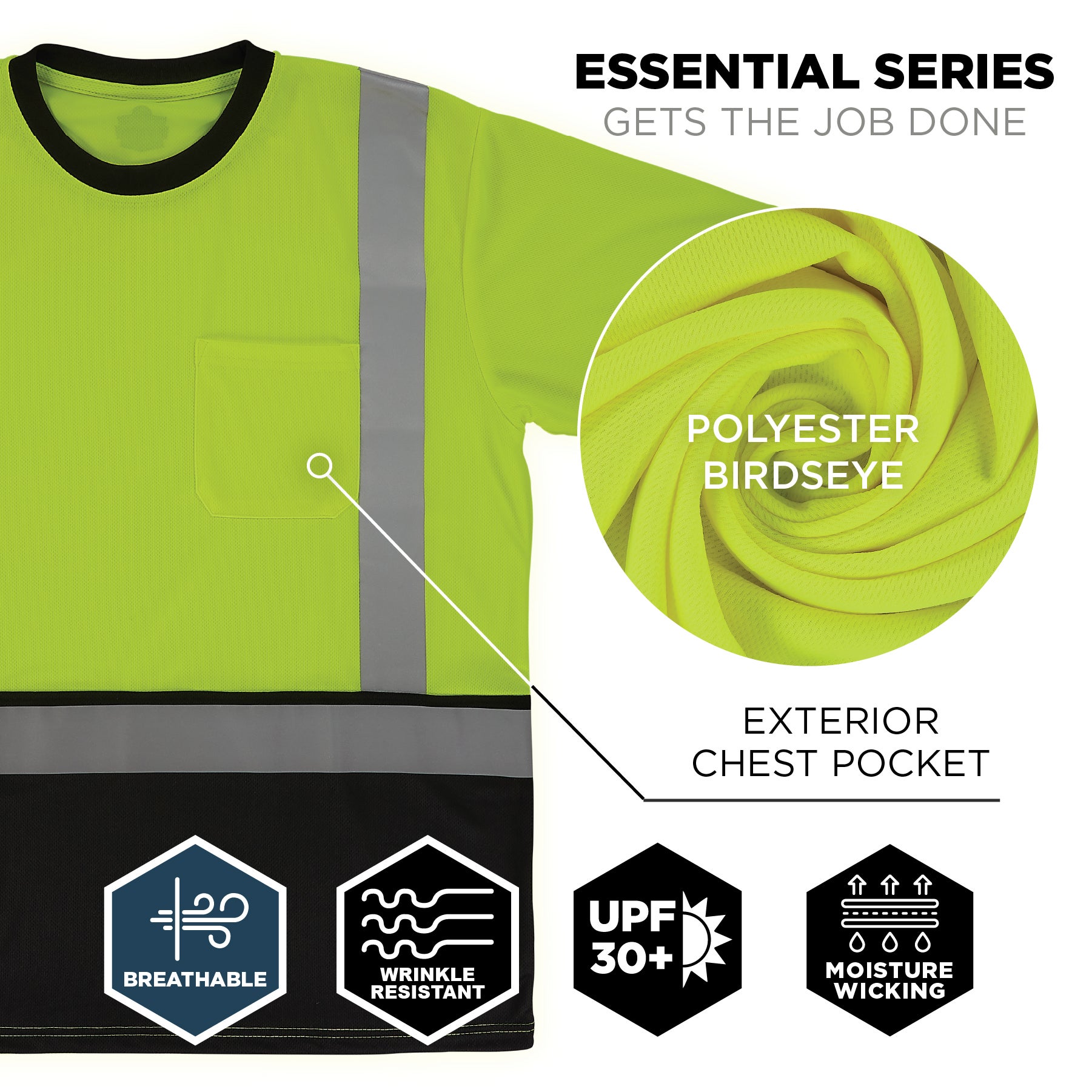 Essential Hi-Vis T-Shirt - Type R, Class 2, Black Bottom