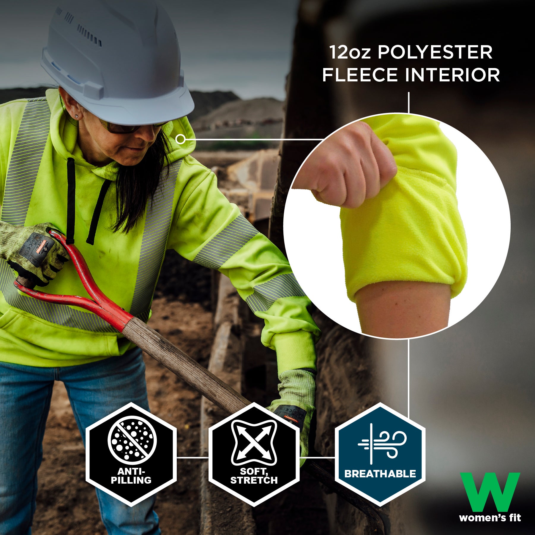 This hi-vis pullover hoodie is made of 12oz (340g) polyester fleece, a material that offers the perfect combination of warmth and breathability, ensuring that workers stay comfortable on the job. The polyester construction also provides durability, so the garment can withstand the rigors of daily work without compromising comfort.