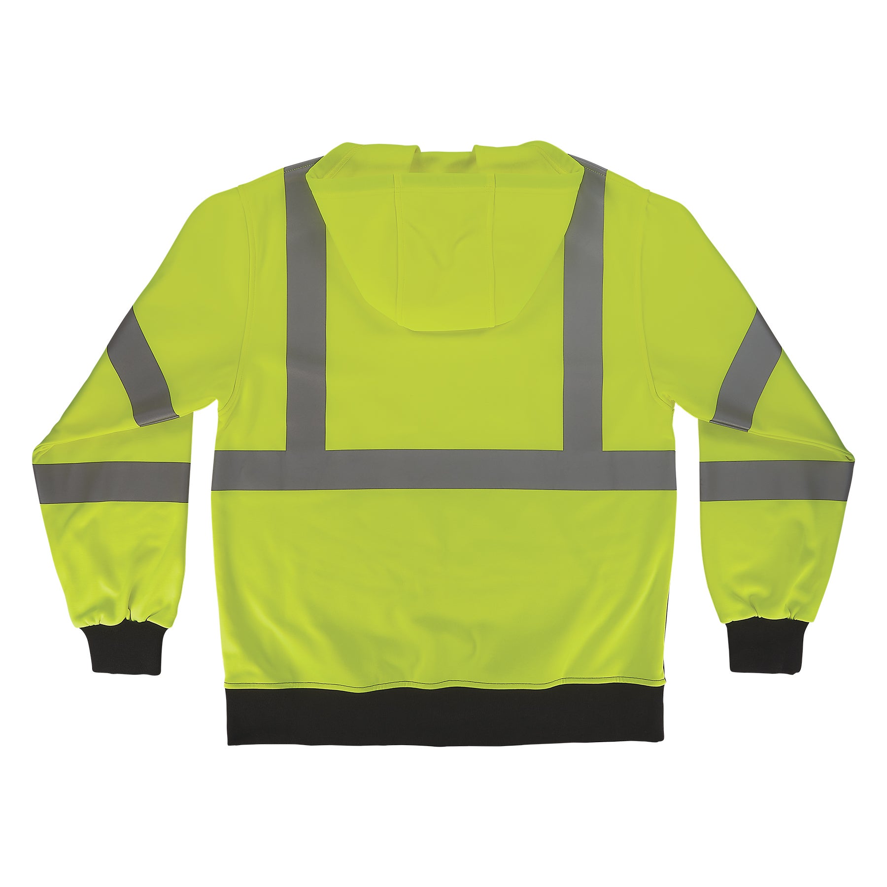 The GloWear 8311BK Essential Hi-Vis Hooded Sweatshirt is designed with a focus on both safety and comfort, offering a range of features that ensure optimal performance throughout the workday. ANSI/ISEA 107-2020, Type R, Class 3 compliant fabric has 2” reflective, solid tape to ensure visibility in low-light and nighttime situations.