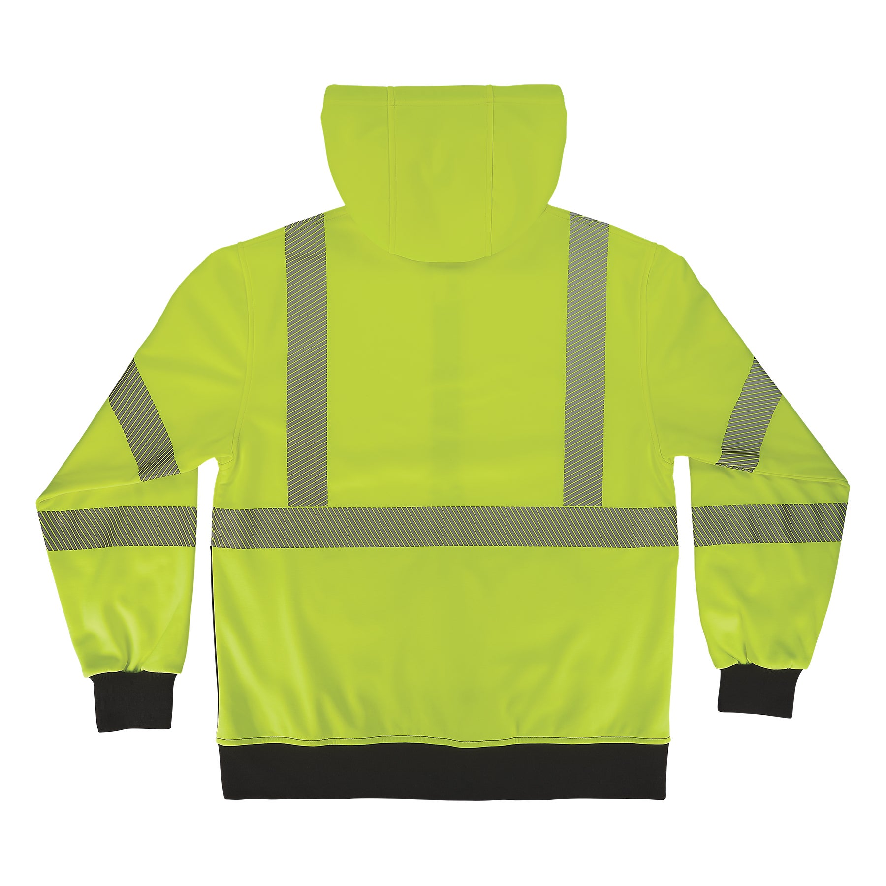 The GloWear 8318BK Performance Hi-Vis Hooded Zip-Up Sweatshirt is designed with a focus on both safety and comfort, offering a range of features that ensure optimal performance throughout the workday. ANSI/ISEA 107-2020, Type R, Class 3 compliant fabric has 2” reflective, segmented tape to ensure visibility in low-light and nighttime situations.