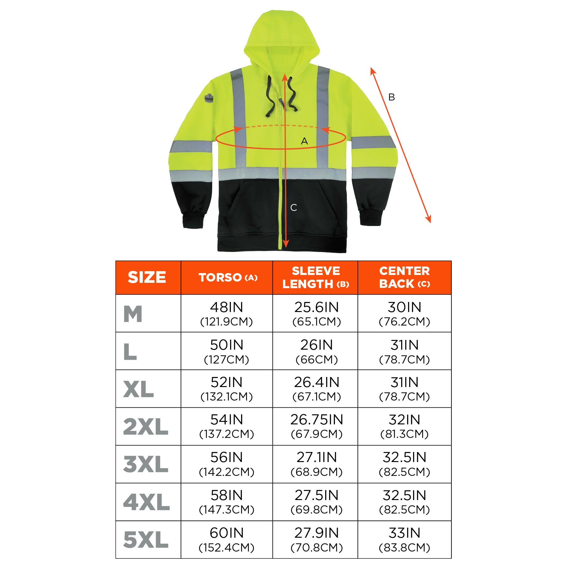 This safety sweatshirt has two slash-style pockets great for additional hand warmth and storage. The bottom front and wrist sections of the sweatshirt are black to prevent a dirty look where it matters most. There is 2" silver reflective tape on torso, shoulders and sleeves that is ANSI/ISEA 107-2020-compliant, making this a great reflective hoodie to wear as night falls for effective visibility. The zipper front closure, drawstring hood and elastic knit waistband and cuffs keep the heat in for all-day warmth throughout the workday.