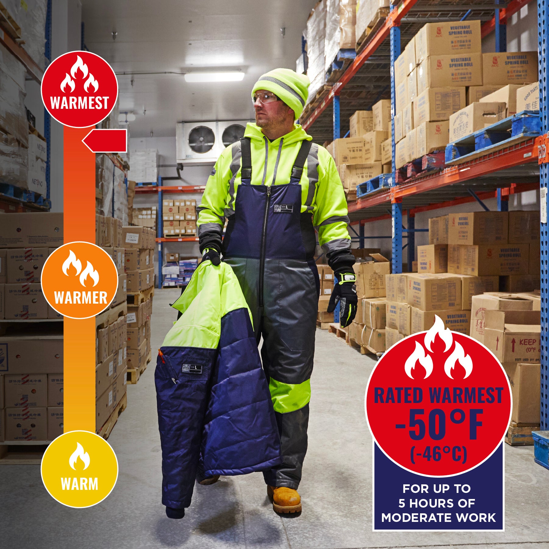 Some warehouses and facilities are more manual in nature, leading to higher MET levels, while others rely on automation, resulting in lower MET levels. N-Ferno 6477 Insulated Freezer Bib Overalls have a CLO rating of 2.59 and are rated at a moderate work level in -50°F // -46°C temperatures for up to 5 hours.