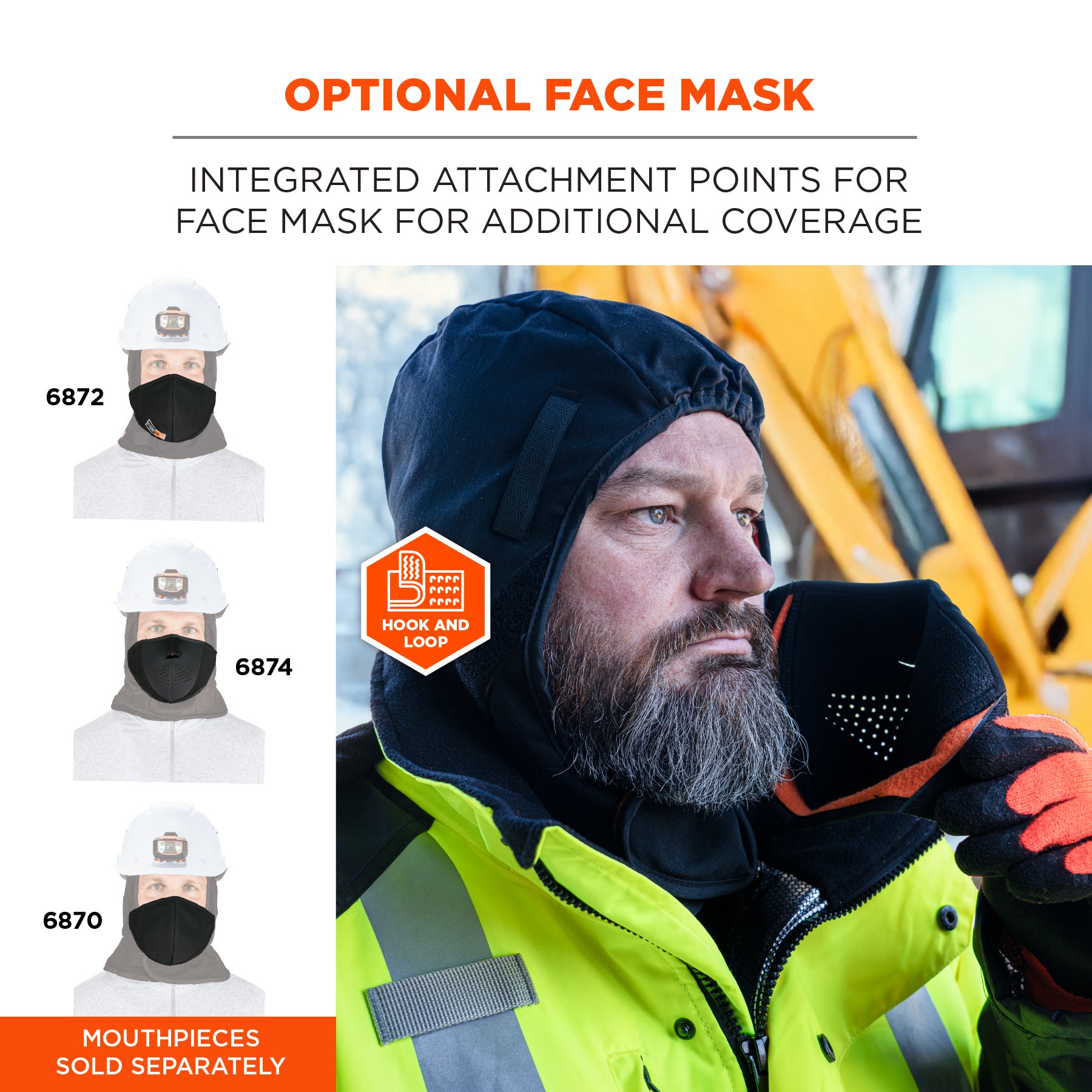 Construction | Fleece Lined, Hard Hat Attachment Straps, Insulated, Mouthpiece Attachment Points, Reflective Accents |