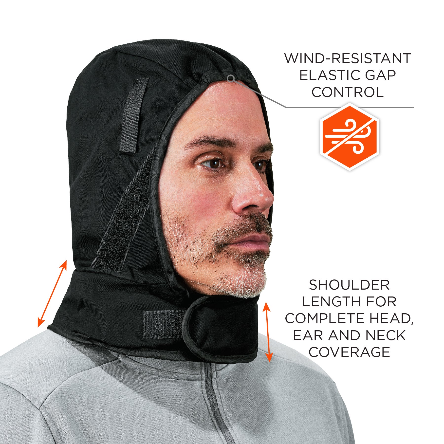 - 2-LAYER THERMAL LINER – Shoulder length design keeps head, ears and neck warm and covered