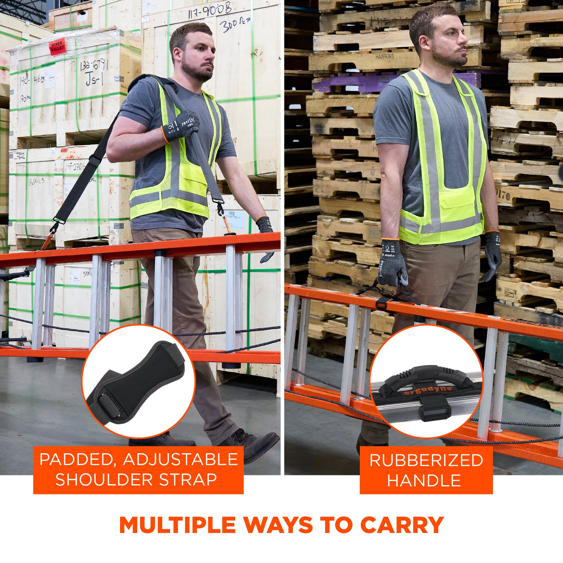 - MULTIPLE WAYS TO TRANSPORT - Easily carry heavy ladders using the center carrying handle or adjustable shoulder strap