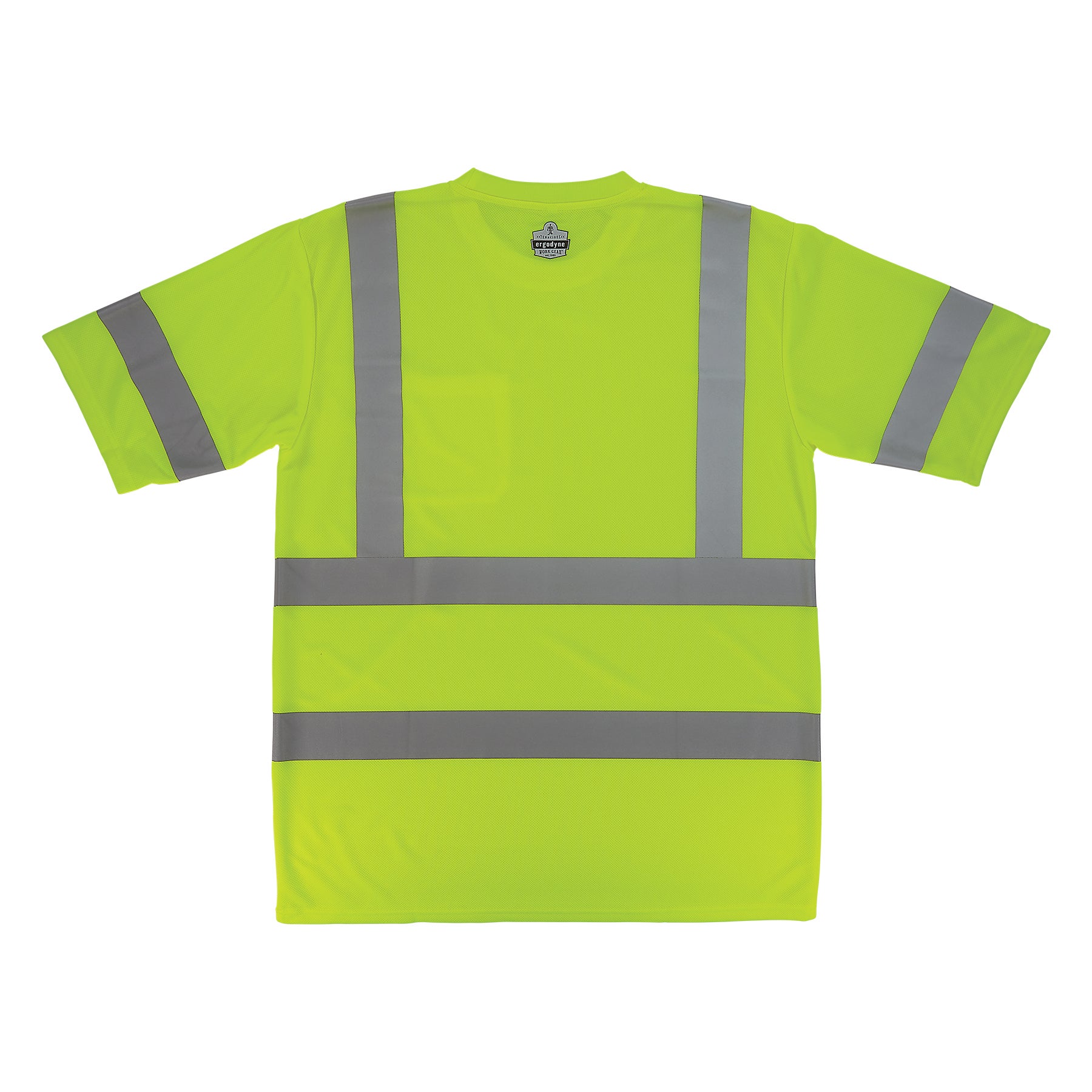 The GloWear 8367 Essential Hi-Vis T-Shirt is designed to enhance visibility in low-light and nighttime conditions with ANSI/ISEA 107-1010, Type R, Class 3 compliant hi-vis fabric and 2” reflective, solid tape.