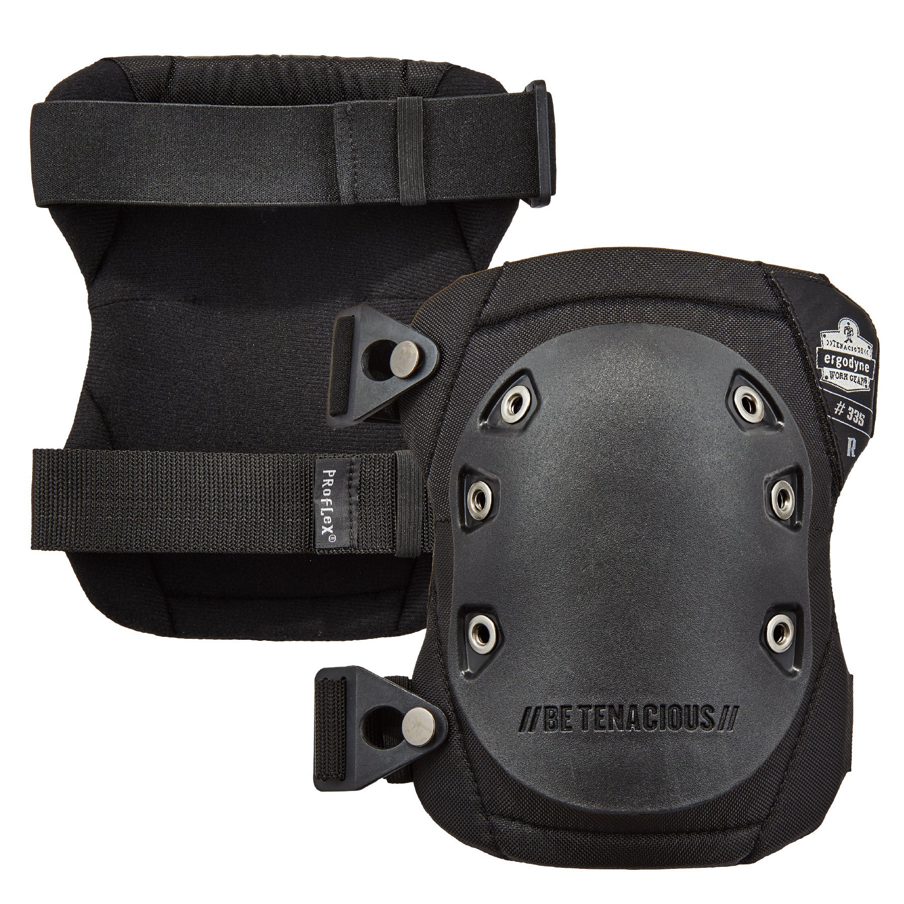 Slip-resistant hard rubber caps provide the perfect balance between grip and mobility, ensuring secure traction and grip without sacrificing smooth and controlled movement, making them ideal for use on both wet and dry surfaces without compromising flexibility or motion. The knee pads are also non-marring and do not scratch or leave marks on floors.