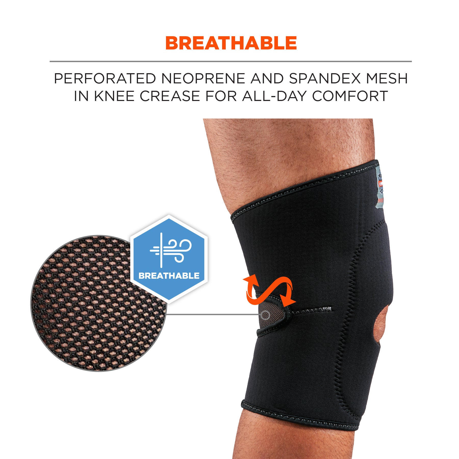 - BREATHABLE - Perforated neoprene and spandex mesh in knee crease enhances airflow