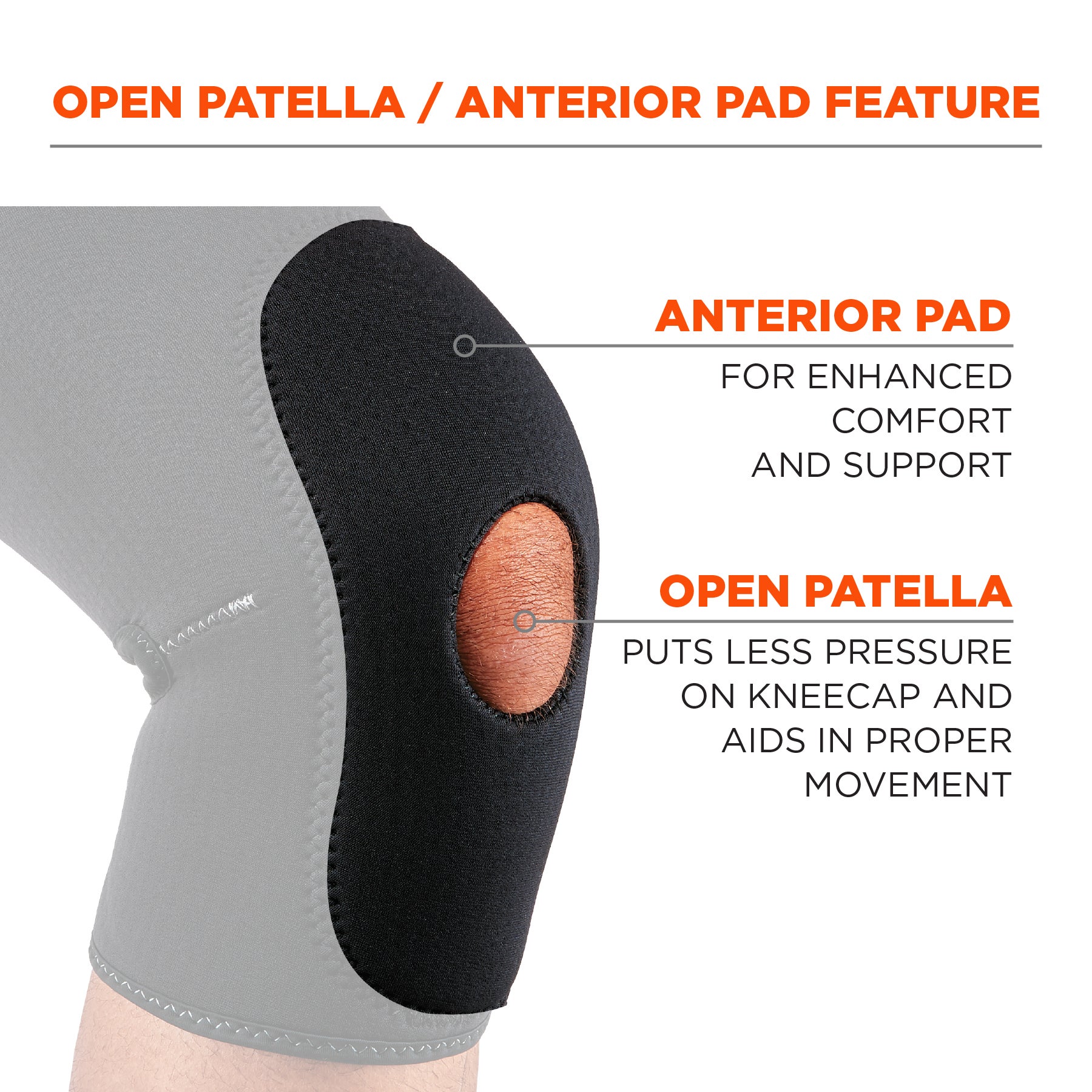 - ANTERIOR PAD - Additional padding around the kneecap for enhanced comfort and support