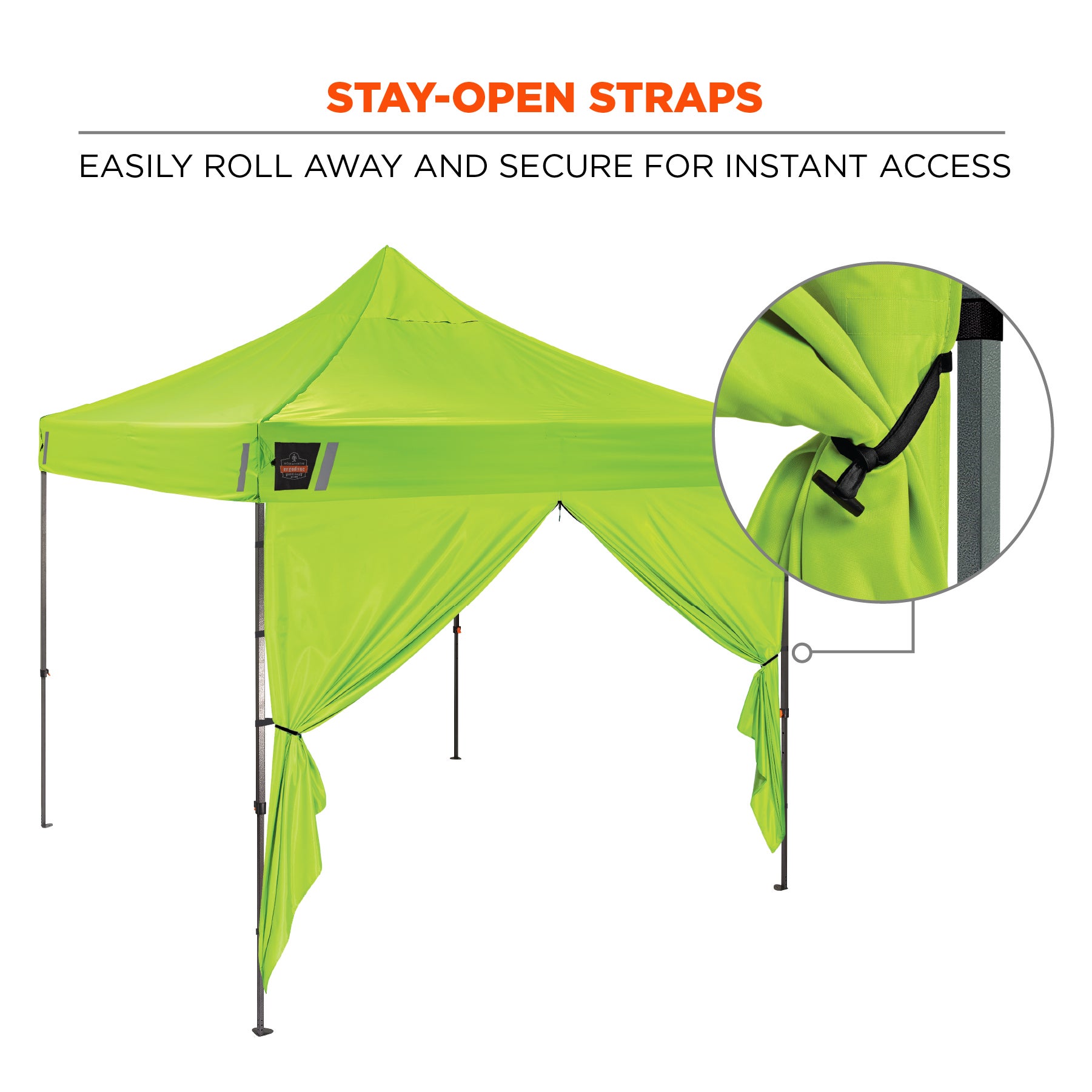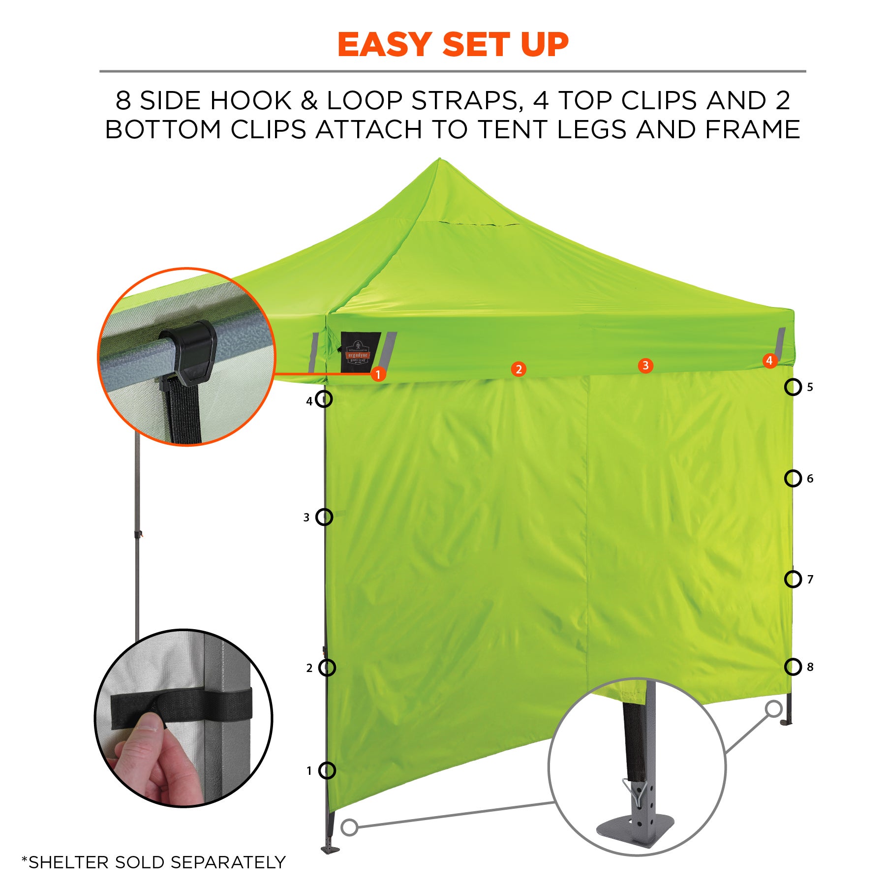 The SHAX 6058 Pop-Up Tent Sidewall Kit includes four durable sidewalls that attach to SHAX 10ft x 10ft Pop-Up Tents, creating a fully enclosed, reliable shelter from sun, wind and rain, giving workers a shaded space to rest, recover and combat heat stress on the job.