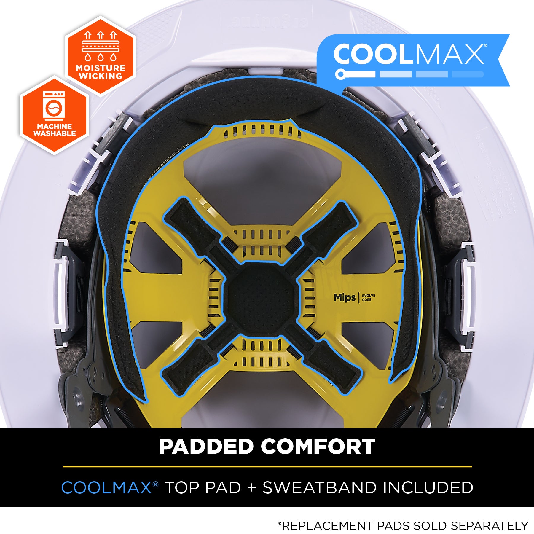 - ALL-DAY COMFORT - Includes removable COOLMAX® hard hat sweatband and top pad made of breathable, sweat-wicking and machine washable materials