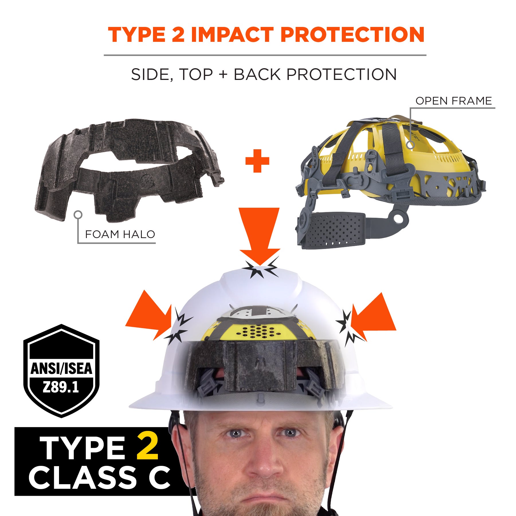 - ADDITIONAL IMPACT PROTECTION - Suspension and shell design fully compliant to ANSI/ISEA Z89.1-2014 (R2019) Type 2, Class C penetration and front, side and rear impact testing requirements for improved all-over protection