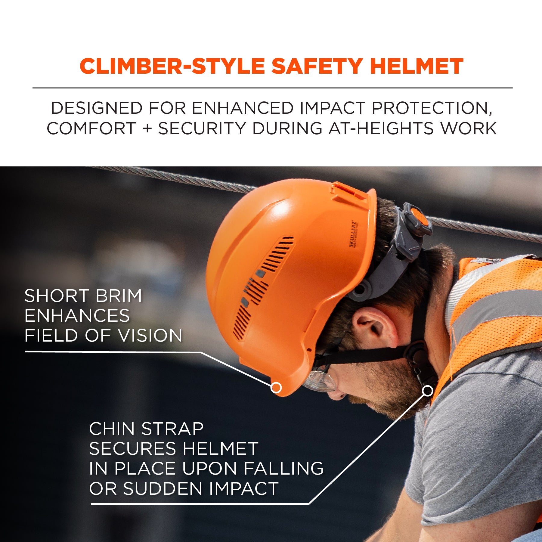 Ideal for those working at heights or needing a climber’s helmet, as well as construction & utility job sites, oil & gas, road work, forestry, mining and general site work.