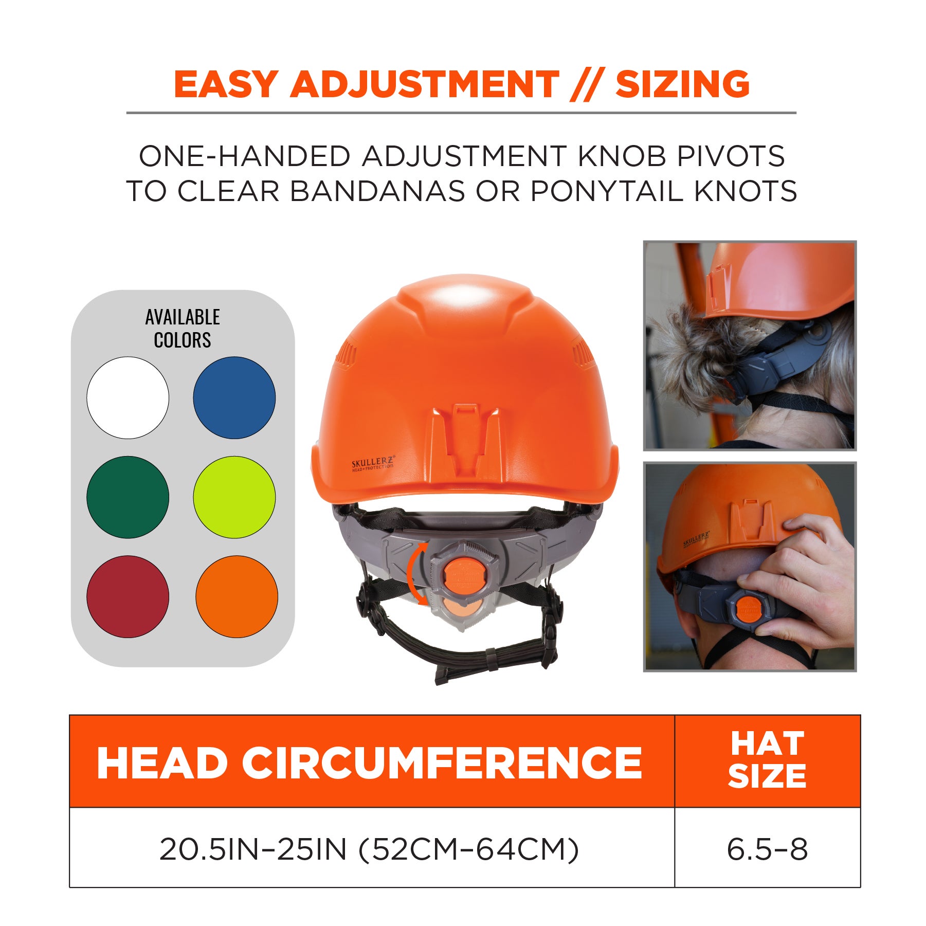 - EASY SIZE ADJUSTMENT - One-handed adjustment knob pivots to improve fit and clear bandana or ponytail knots