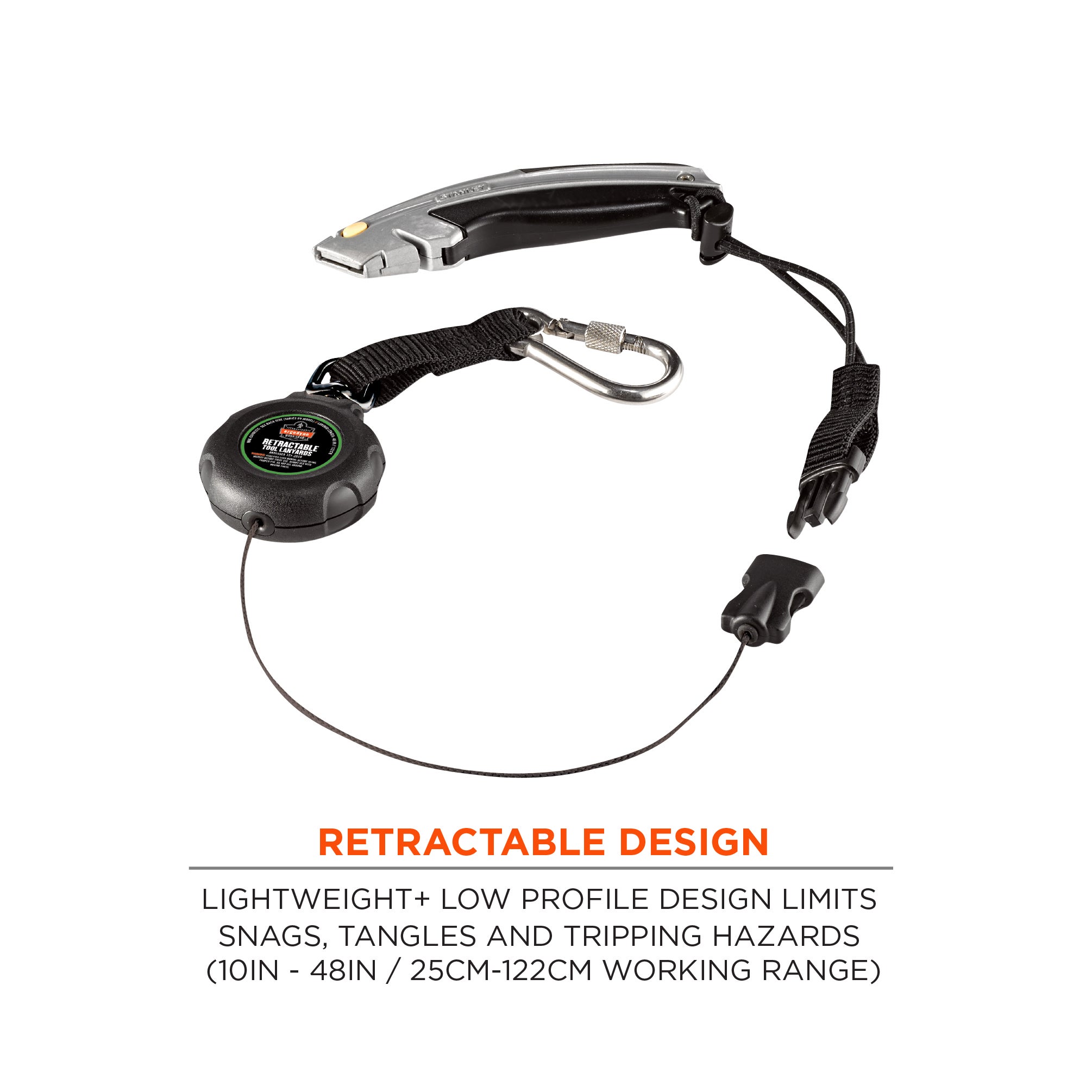 Set your working length by pulling the cord out to the desired length and tugging upward to lock the cord in place. Setting a fixed-length alleviates the constant tension on your tool while working. To retract, slightly extend the lanyard out a bit further to release the lock allowing the cord to retract again.