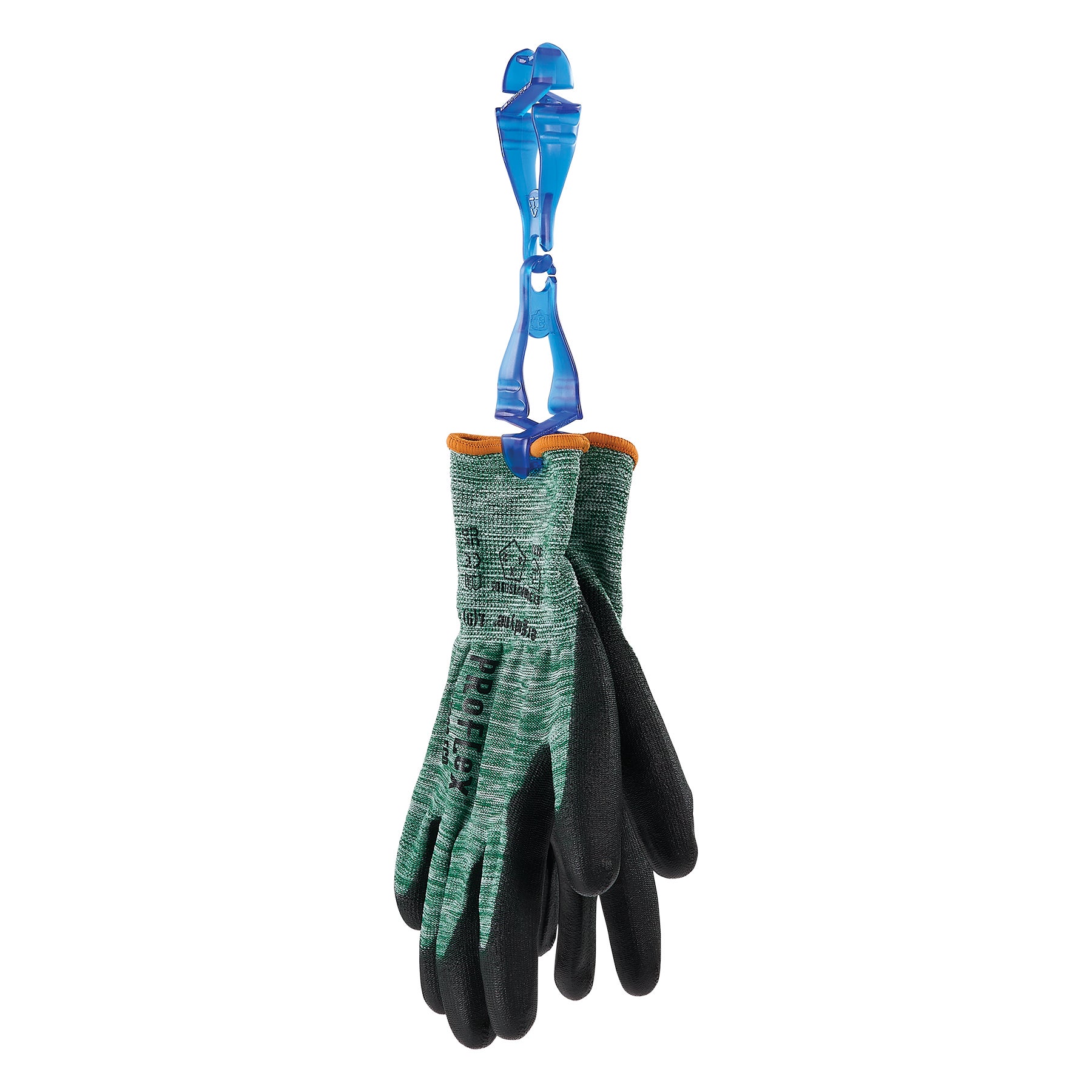 The Squids 3400-ECO Recycled Glove Clip Holder features dual clips—one that attaches to belts or workstations and another that grabs your gear—keeping gloves, ice traction, cooling towels and other items too bulky for pockets close at hand. By keeping gear clipped to the person or workstation, it helps prevent drops, losses and potential injuries caused by foreign objects.