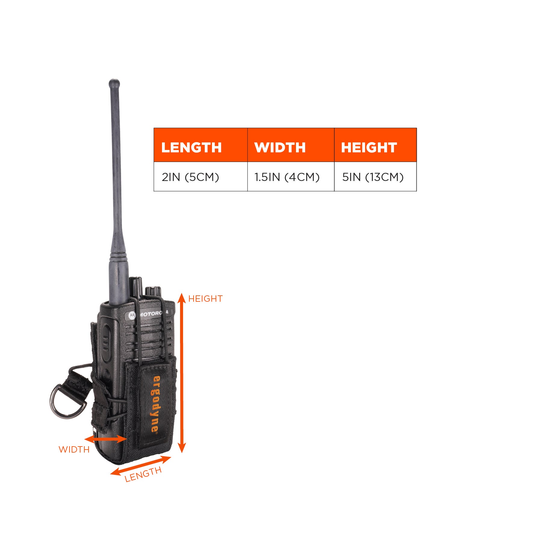 Fits radios 2” L x 1.5” W x 5” H // 5cm x 4cm x 13cm, safe working capacity: 2lb // 0.9kg (do not include radio antenna when measuring dimensions of radio)