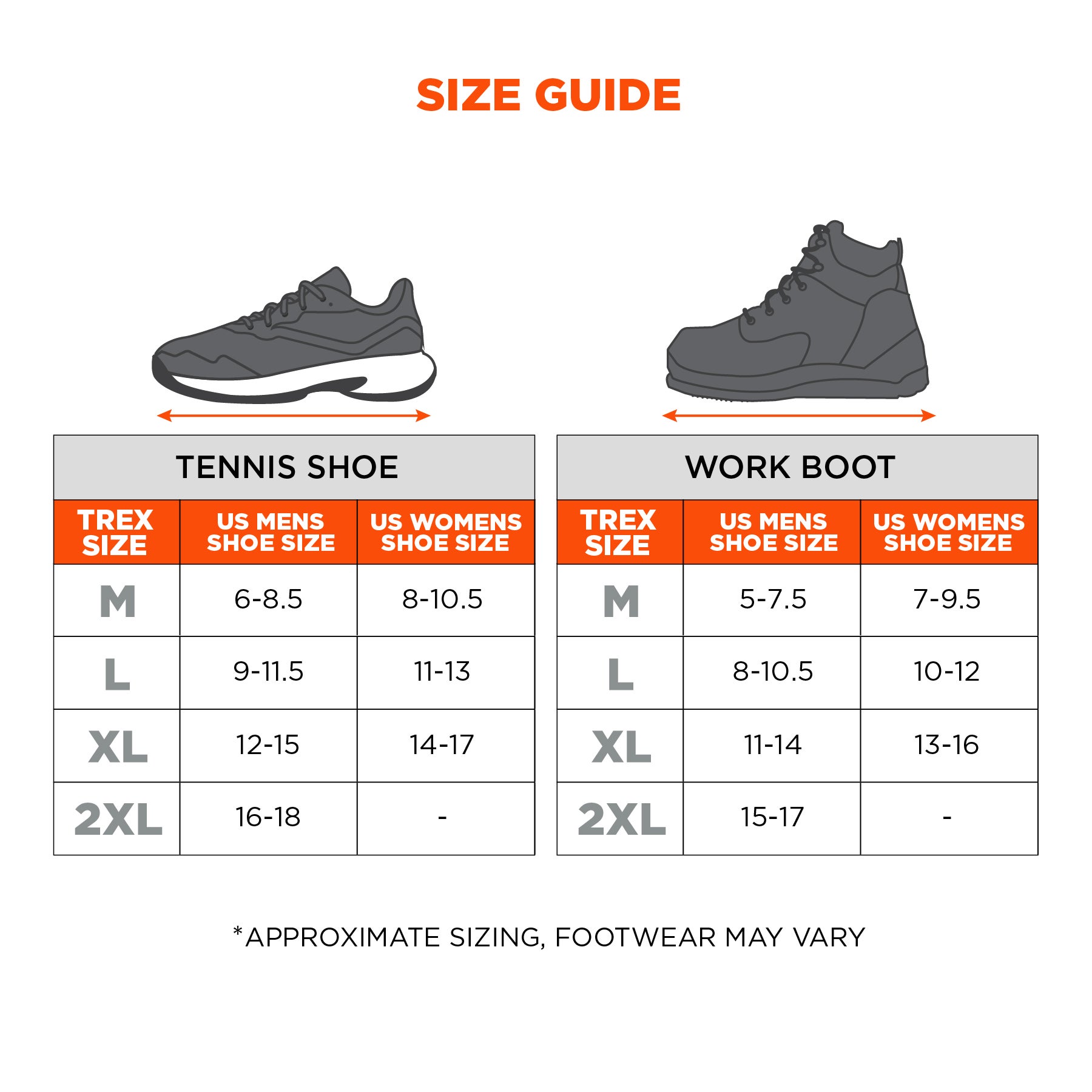 TREX Ice Traction should fit snugly on your boot or shoe. Stretchy, one-piece design means no tightening or adjustments needed. Use your shoe/boot size to determine the approximate size.